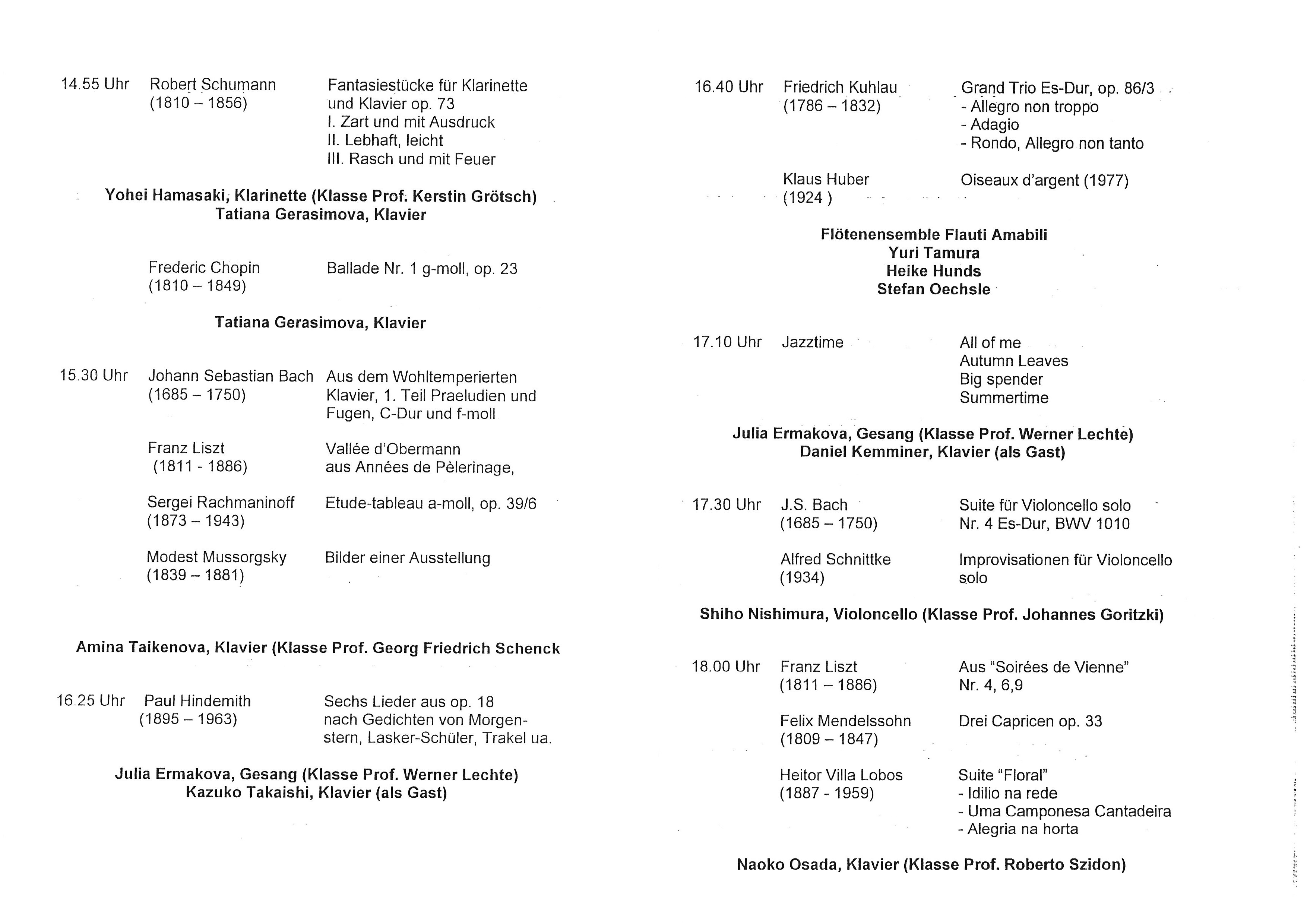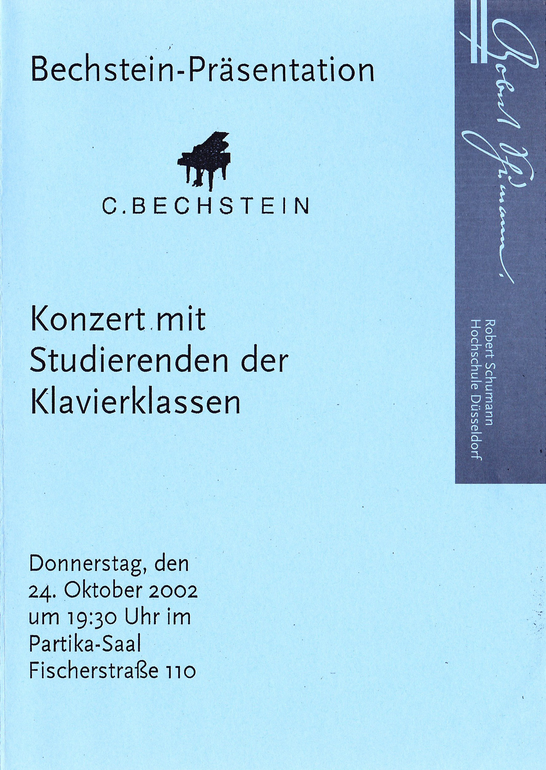 10月 Prtika-Saal Bechstein-Präsentation Konzert mit Studierenden der Klavierklassen(ドイツ)