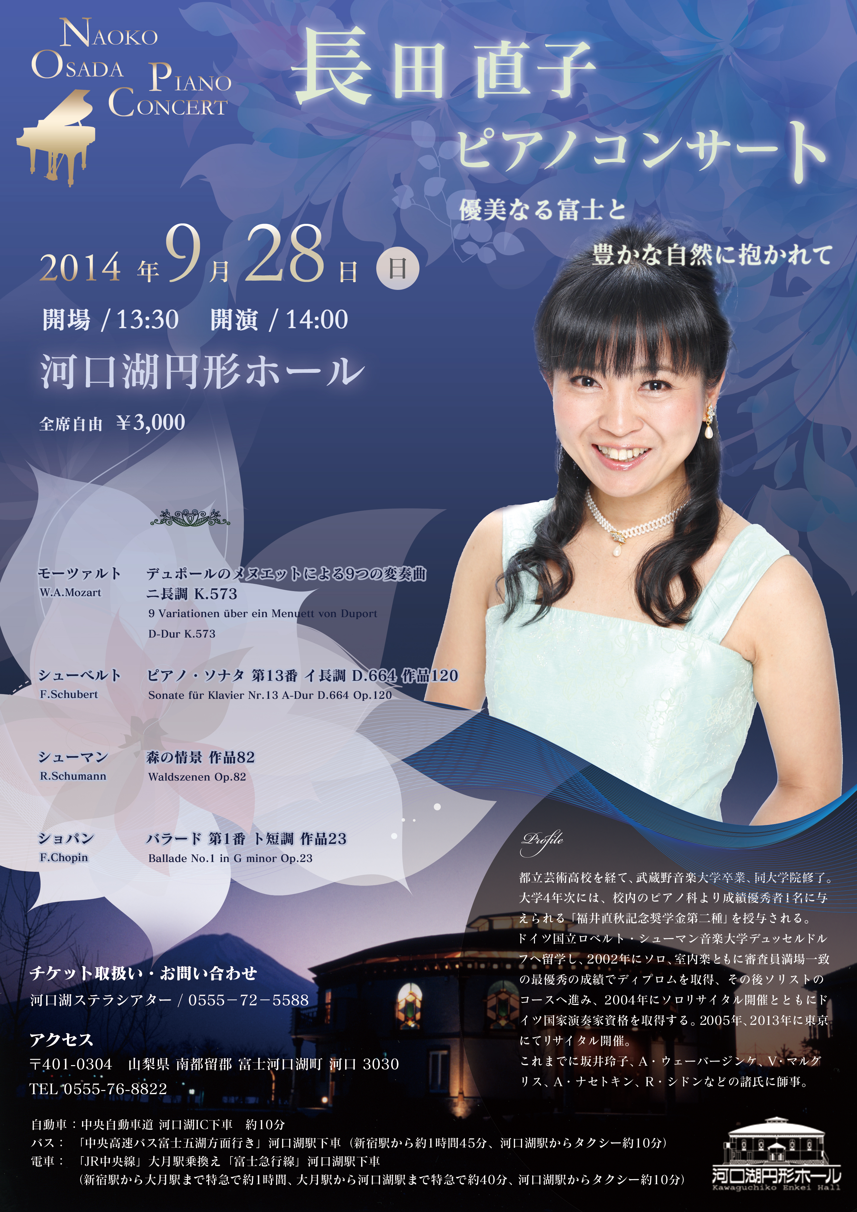 9月 河口湖円形ホール 長田直子ピアノコンサート