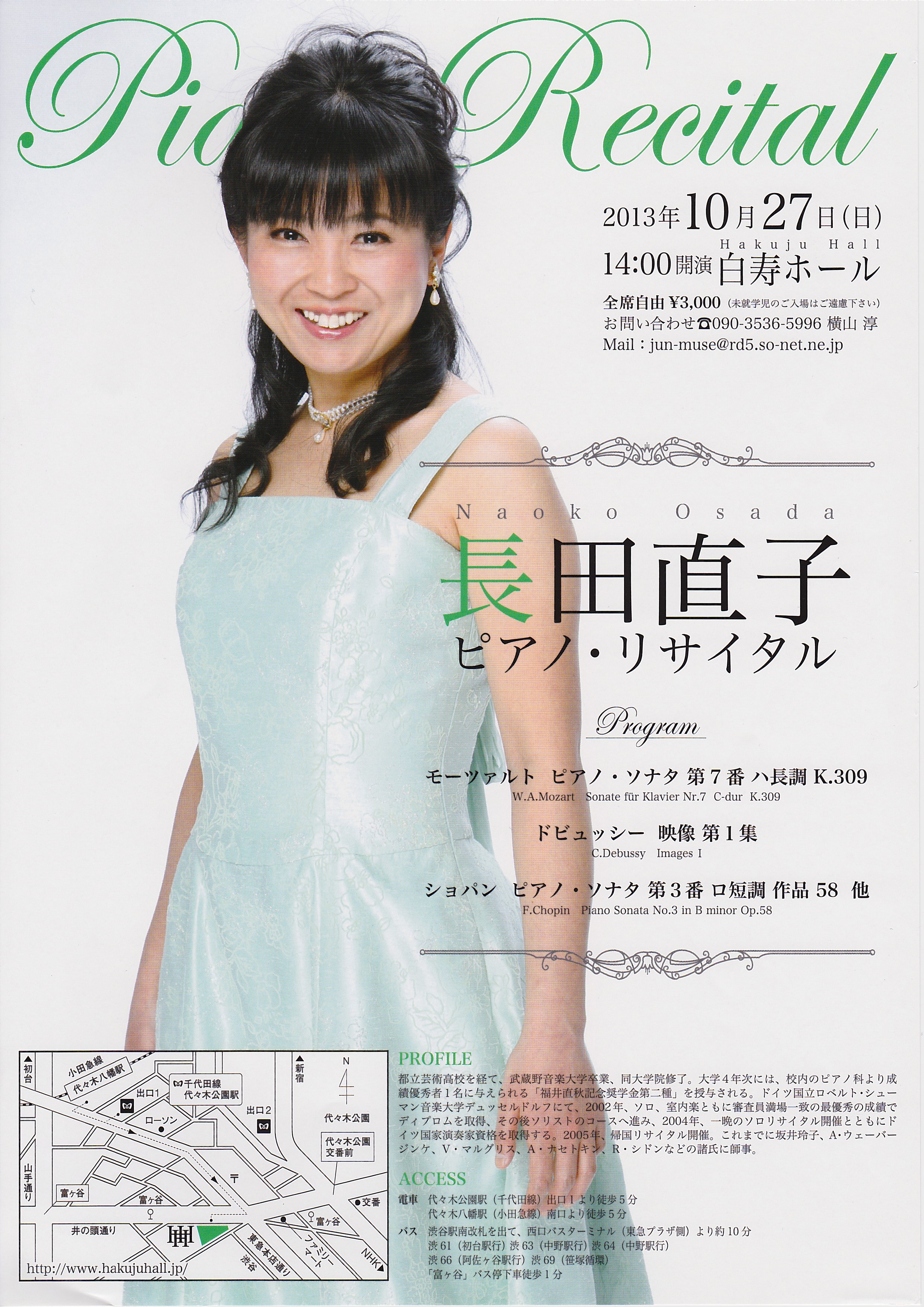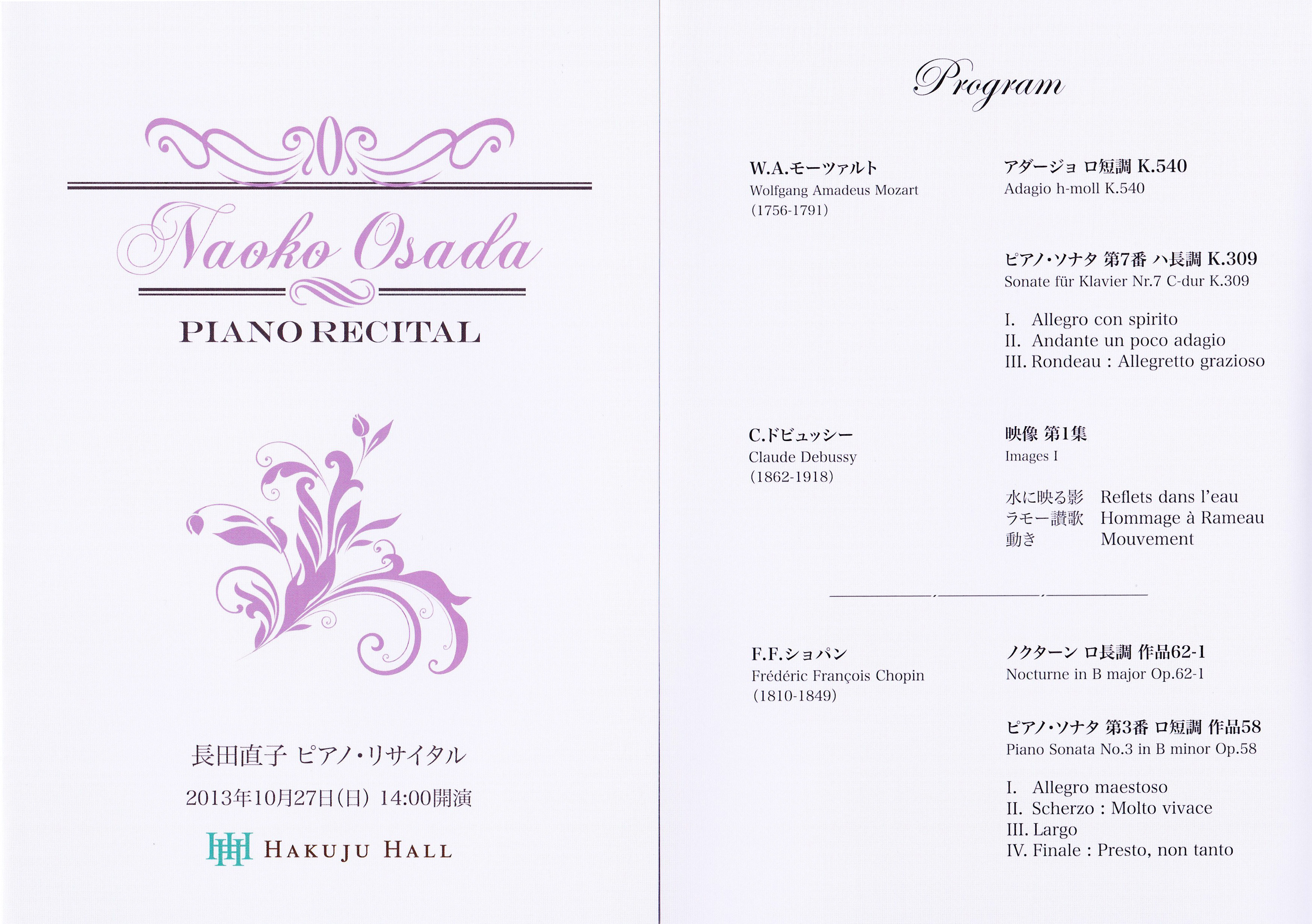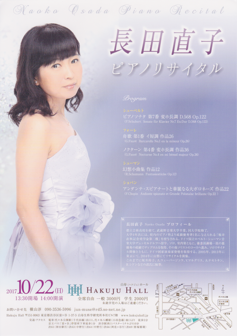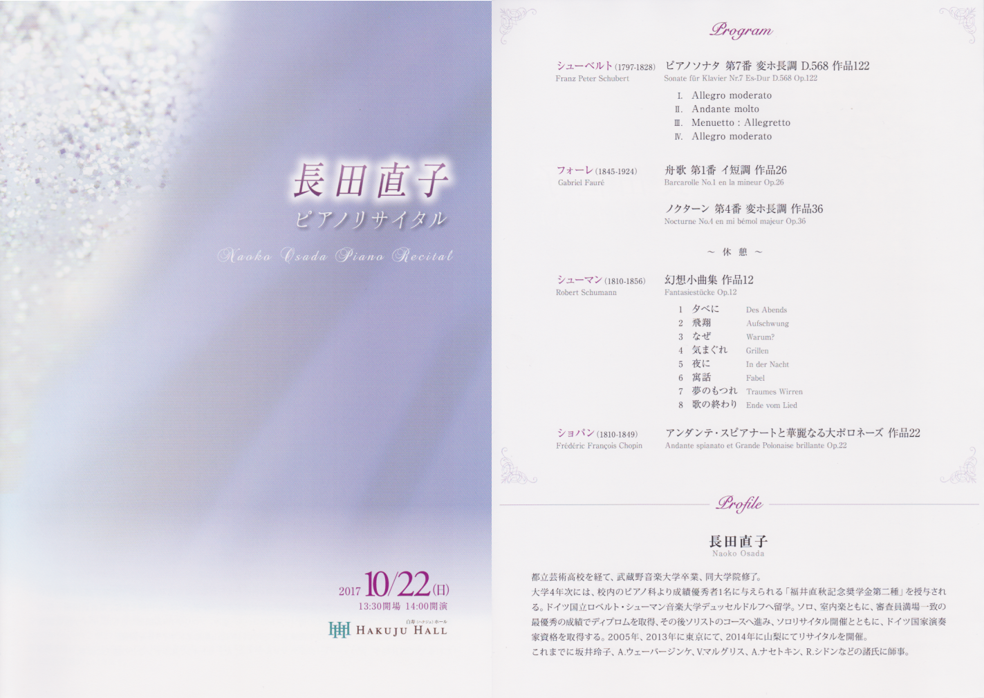 10月 白寿ホール 長田直子ピアノリサイタル