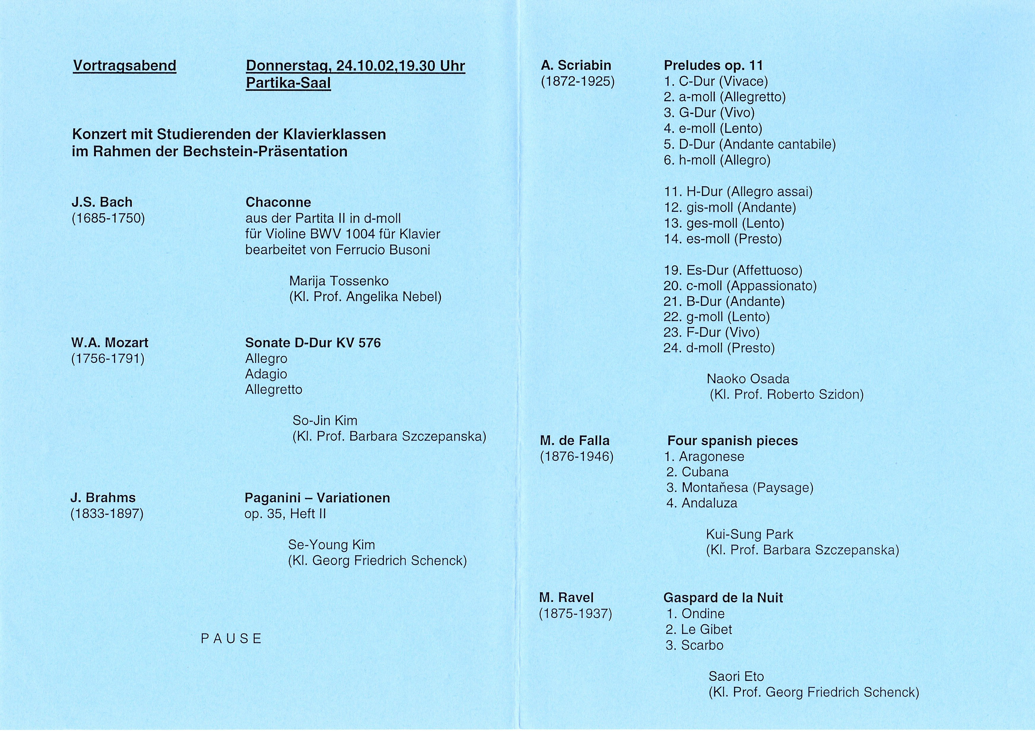 2002年10月24日 Prtika-Saal(ドイツ)