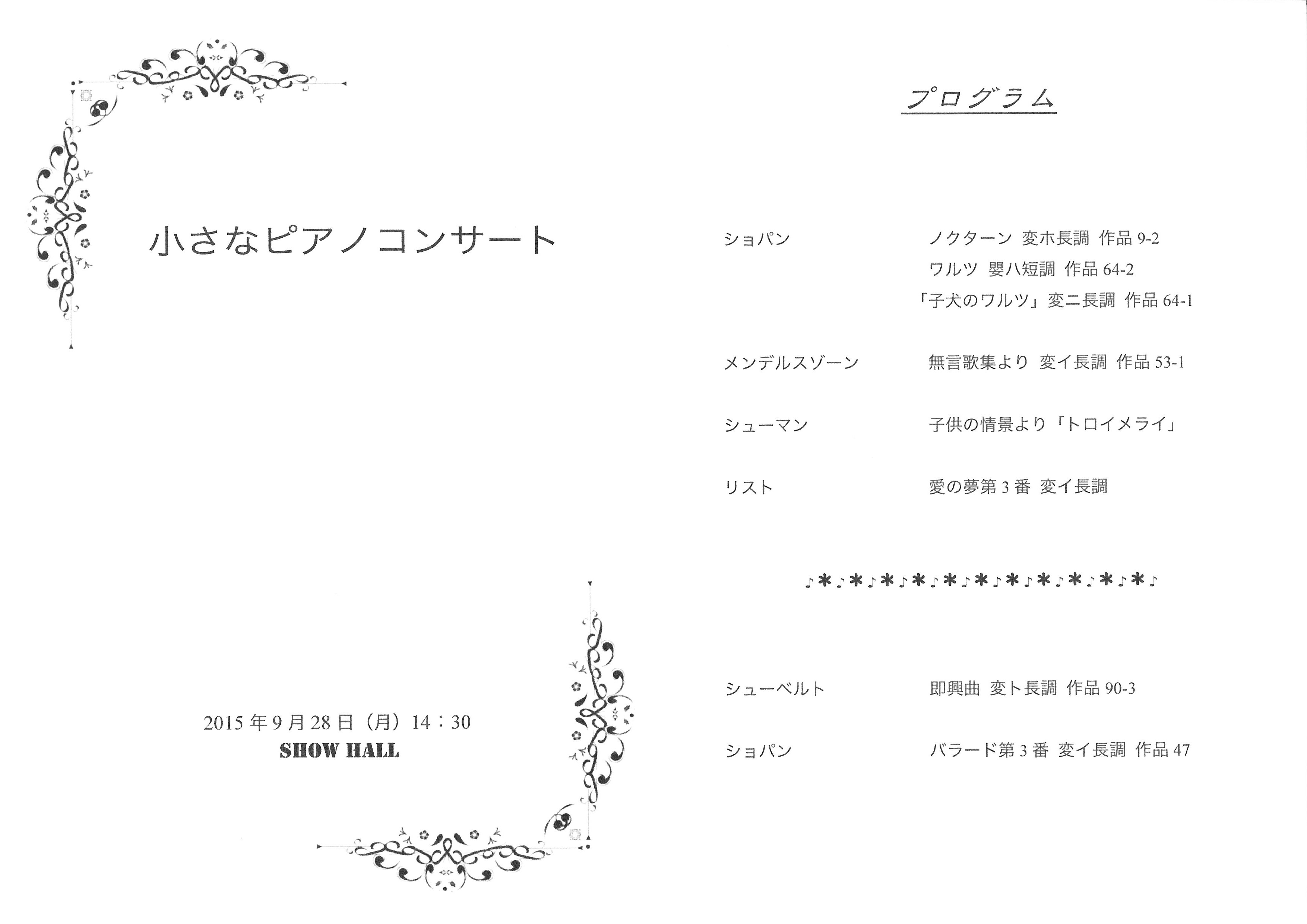 9月 湘南 SHOW HALL 小さなコンサート