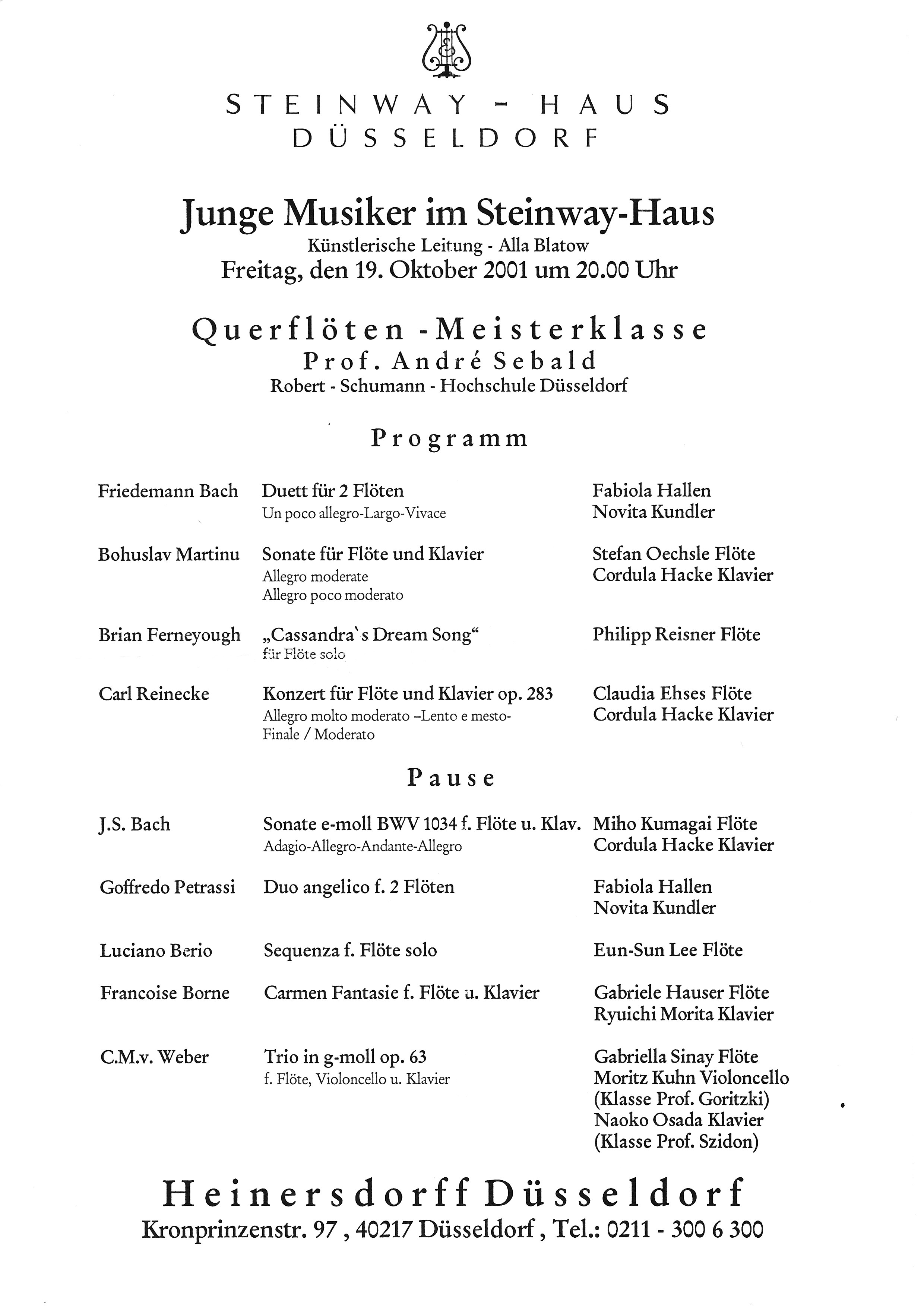 10月 STEINWAY-HAUS Düsseldorf Junge Musiker im Steinway-Haus(ドイツ)