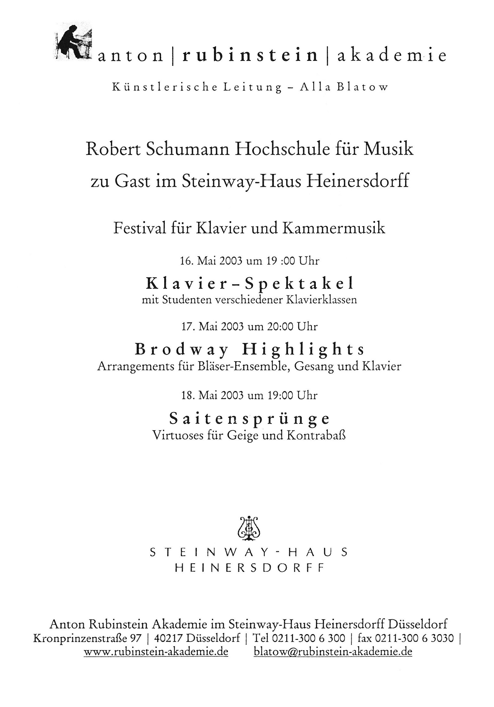 5月 STEINWAY-HAUS HEINERSDORFF anton rubinstein akademie Festival für Klavier und Kammermusik(ドイツ)